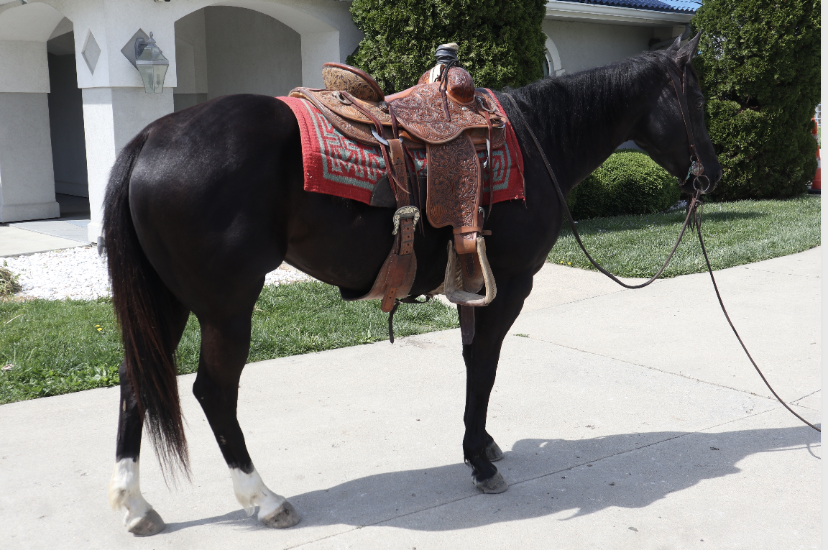 Nova is a AQHA-registered black mare with two standout qualities: she is beautiful and she is gentle. She has the ability to move out when asked but is happiest traveling slow on a loose rein.